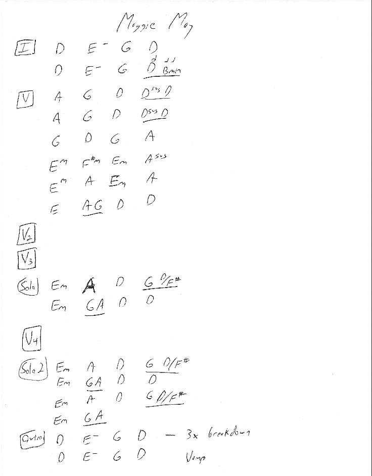 One of the covers we played was Maggie May by Rod Stewart.